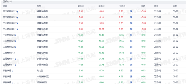 2.正极材料价格
