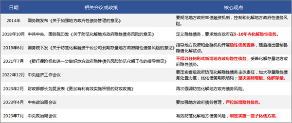 此次政策的侧重方向较之前都发生了较大程度的转变,以往更多采用“政策施压”的方式,倒逼地方政府积极化债,同时严控隐性债务的新增,从正面降低债务风险的累积;而本次中共中央政治局展现的更像是以顶层设计的方式推动地方化债,确保债务风险软着陆。