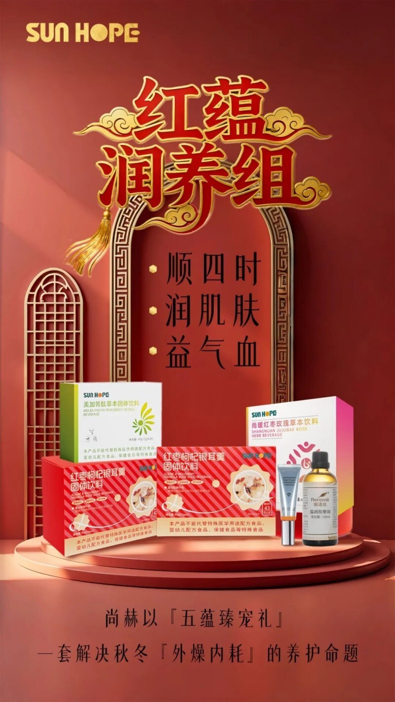 当第一片落叶悄然飘落,凉风卷走夏日最后一丝余温,季节的更迭便以一种不容忽视的方式提醒着人们——秋已深,冬将至。在这样的换季时节,身体会变得格外敏感,需要更为细致周到的全面呵护。为此,知名大健康企业尚赫推出的“红蕴润养组”产品,从深秋养生智慧中汲取灵感,提供了一套由外至内的全面呵护方案,帮助人们在寒意渐起的日子里,依然能保持身心的润泽与元气。