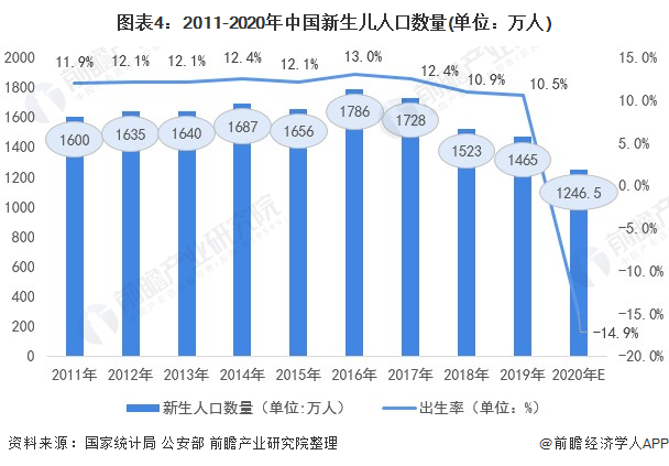 2020年,公安部数据显示,新生儿登记数仅1003.5万,2019年公安部新生儿登记数为当年统计局出生人口的80.5%,按此比例反推2020年出生人口或较2019年下降超200万,较2019年大幅下降约15%。